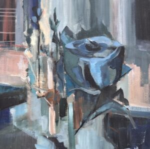 Det är ofta 2-3 målningar på gång samtidigt i ateljén. Någon står nästan klar och vi tittar mest på varann under dagen. “Det är så